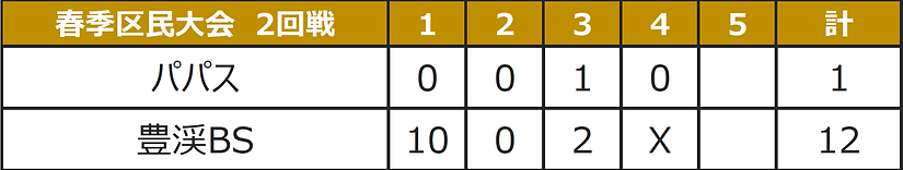 2試合目はパパスさんでした。初回相手の攻撃を2試合目で、本来の実力を発揮したピッチャー#18が0点に抑えてくれました。そして迎えた裏で怒涛の攻撃を見せてた豊渓は勢いを途切れさせることなく、相手に1点だけを許しただけでした。
